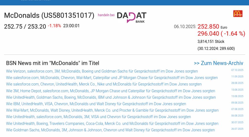 McDonalds am 6.10. -1,64%, Volumen 108% normaler Tage