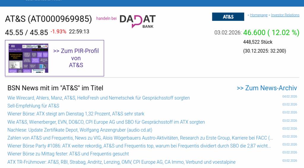 AT&S am 3.2. 12,02%, Volumen 304% normaler Tage