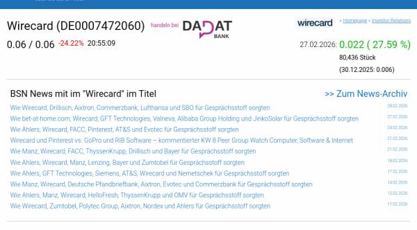 Wirecard am 27.2. 27,59%, Volumen 37% normaler Tage