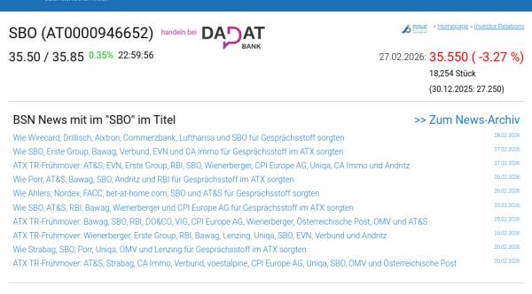 SBO am 27.2. -3,27%, Volumen 30% normaler Tage