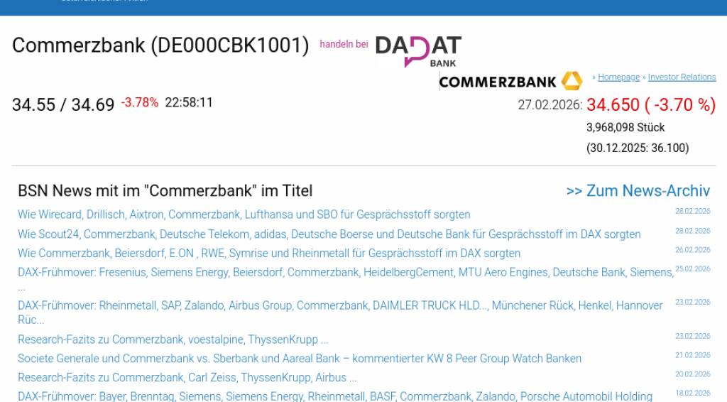 Commerzbank am 27.2. -3,70%, Volumen 127% normaler Tage