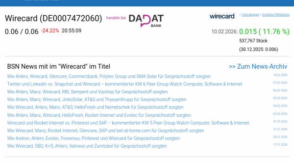 Wirecard am 10.2. 11,76%, Volumen 331% normaler Tage