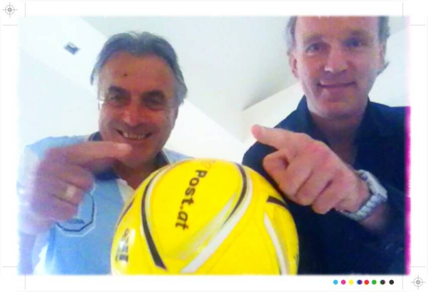 Hans Huber, zu Besuch im (noch unfertigen) Büro Christian Drastil. Das Ganze ist nicht "powered by post.at", die Kugel hat nur eine schöne Farbe ...