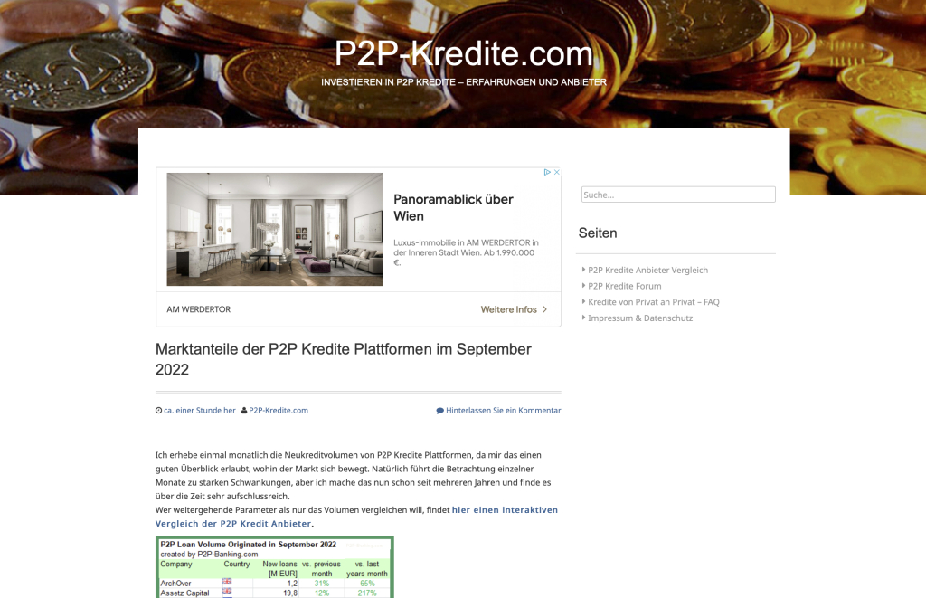 Herzlich willkommen auf Passives Einkommen mit P2P Krediten, einem meiner Lieblingsprojekte. Diese Seite soll dir eine zentrale Anlaufstelle für deine P2P Investments sein.