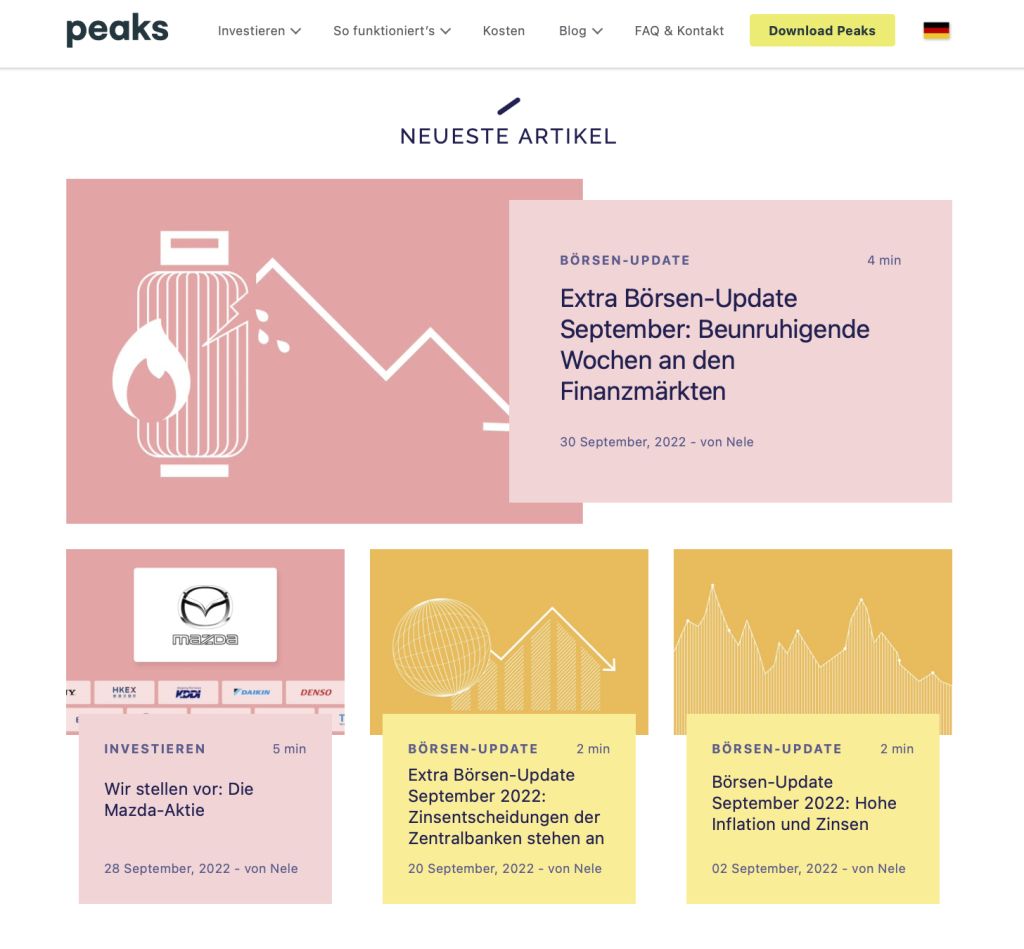 Up - so heißt der Blog von Peaks, eine App die das Investieren einfach macht. In diesem Blog informieren wir dich über alles, was mit Geld, Investments und Finanzen zu tun hat. Für unsere Peaker und alle, die Investieren spannend und interessant finden!