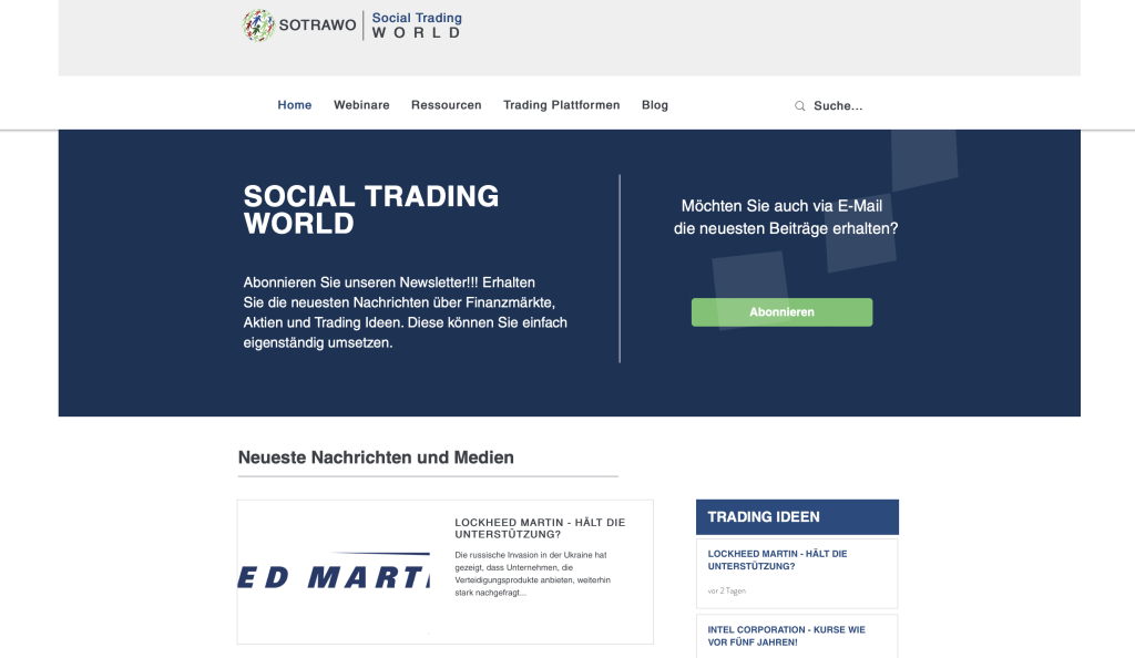Sotrawo - Social Trading World wurde als Finanzblog 2015 gegründet. Die Idee ist es Strategien und Möglichkeiten im modernen Aktienhandel aufzuzeigen. Egal auf welcher Plattform Sie handeln. Die Idee hinter dem Trade, entscheidet über den Erfolg.