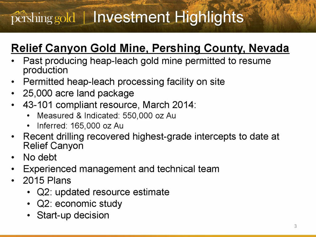 „ Investing highlights - Pershing Gold “