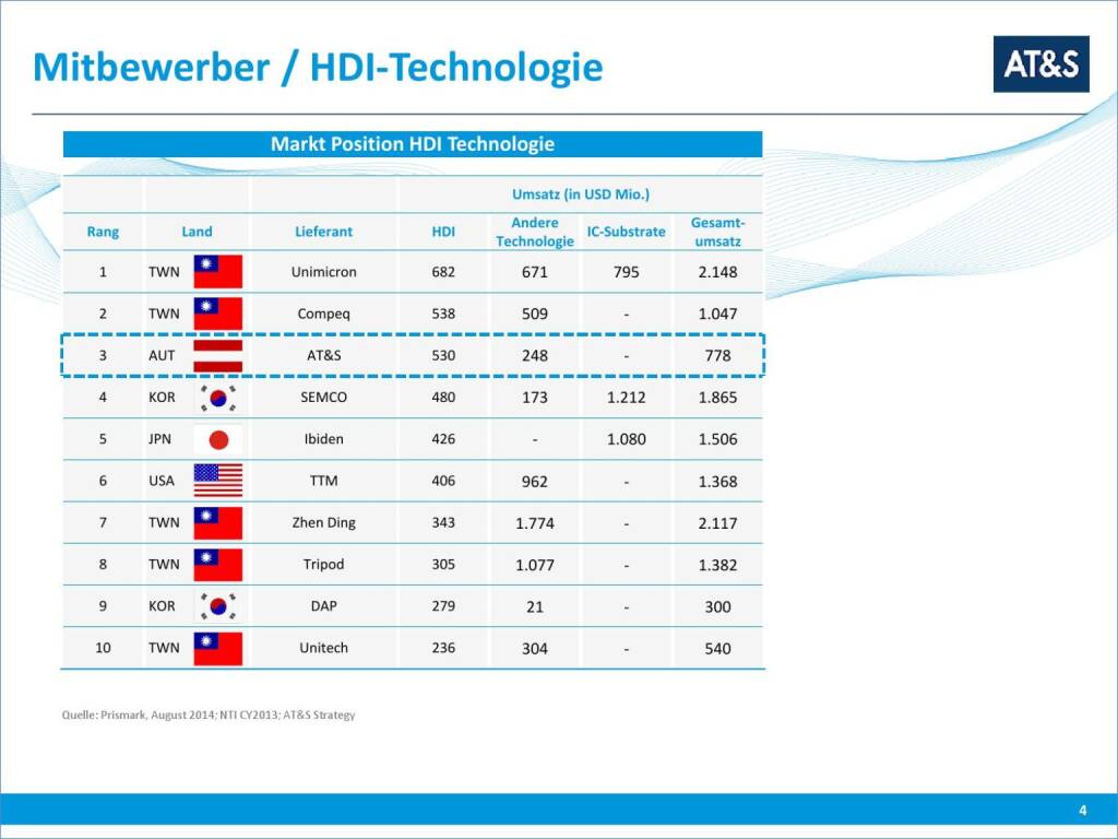 „ AT&S Mitbewerber / HDI-Technologie “