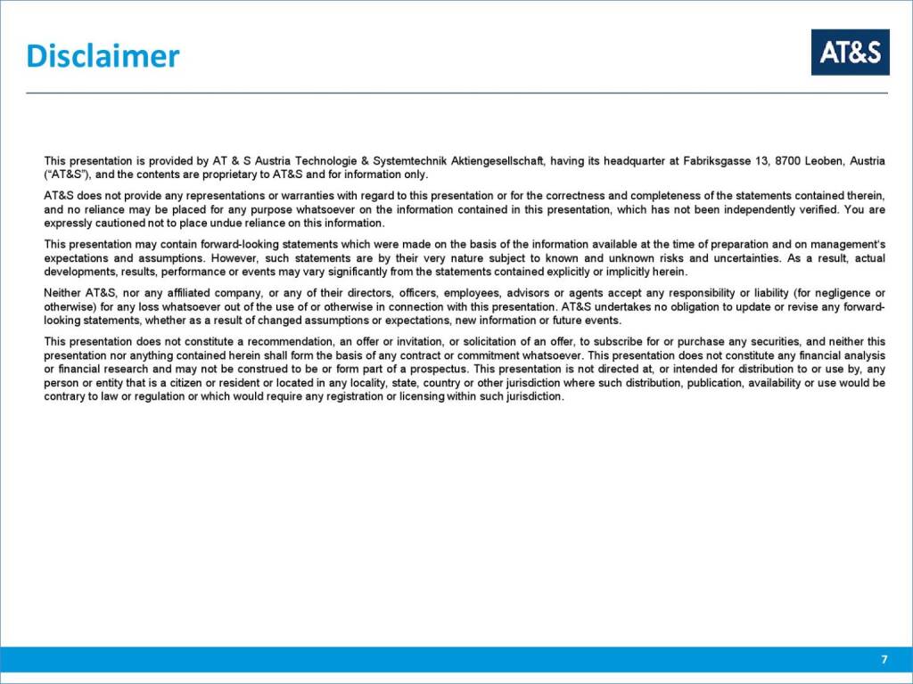 „ AT&S Dicsclaimer “