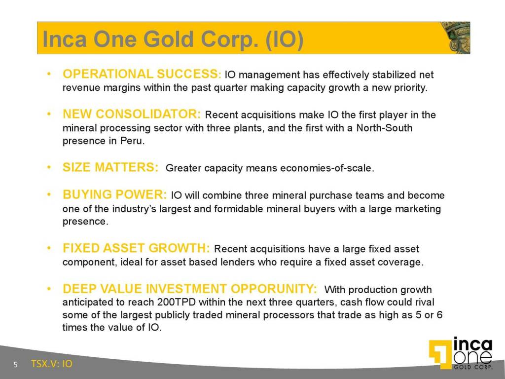 „ Inca One Gold Corp. (IO) “