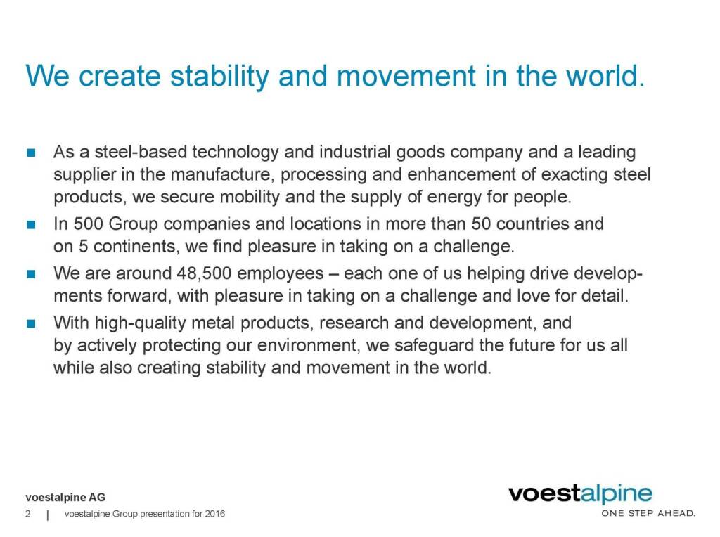 „ voestalpine - We create stability and movement in the world. “