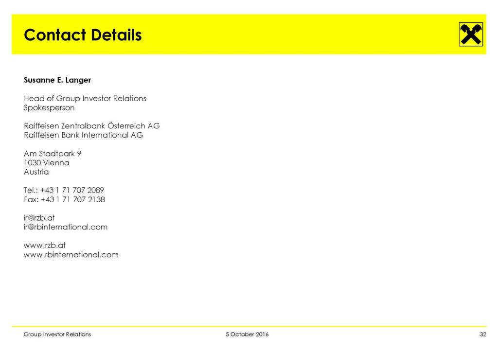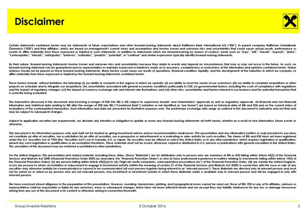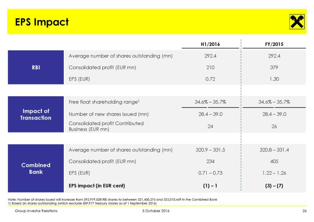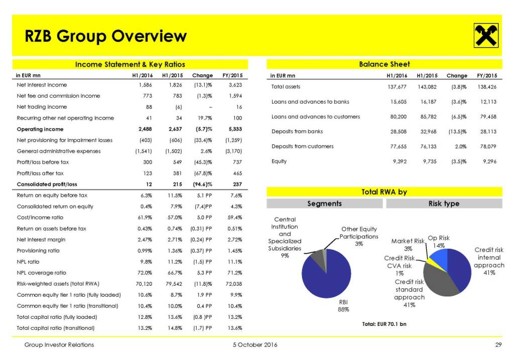„ RBI - Key Financials of Combined Bank (H1/2016) “