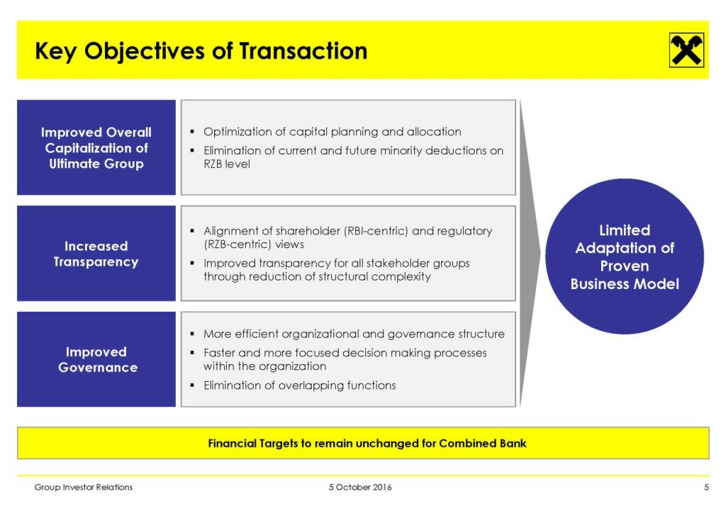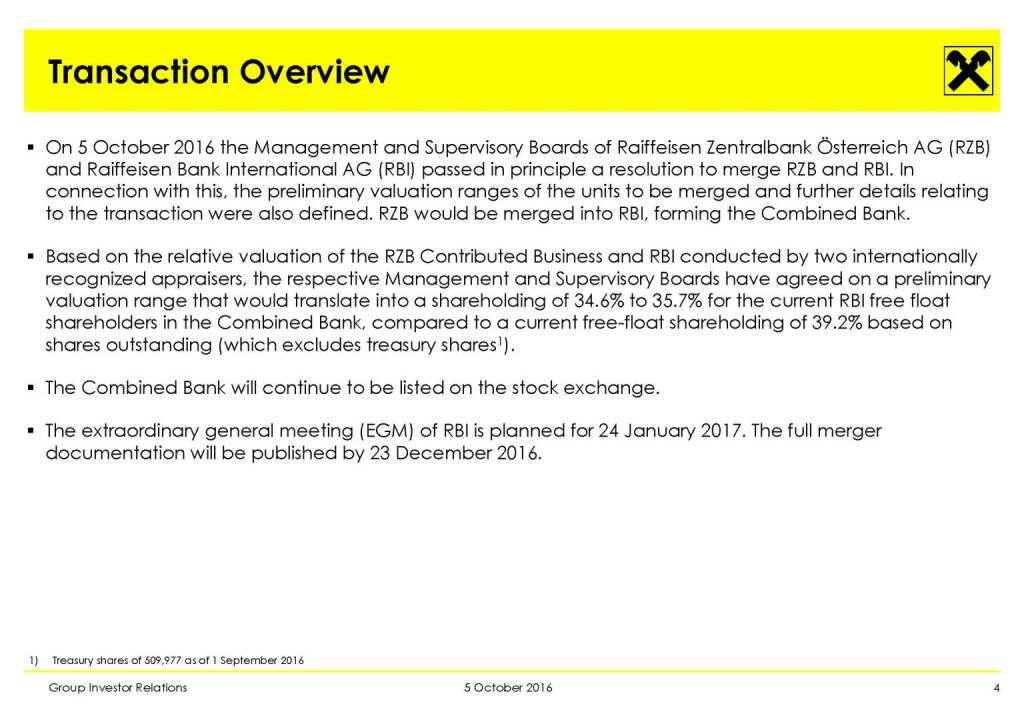 „ Evaluation Process Update: Merger of RZB and RBI “