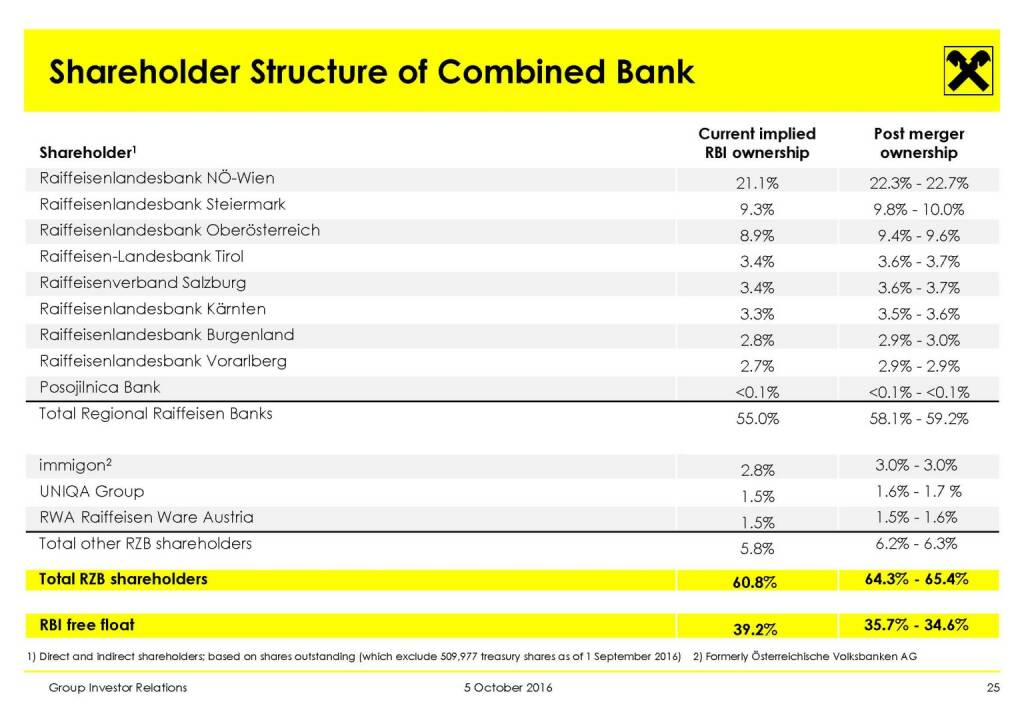 „ RBI - Shareholder Structure of Combined Bank “