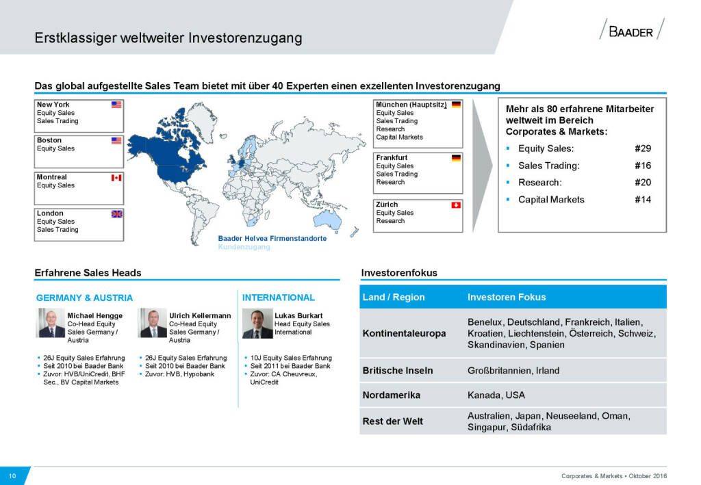 „ Baader Bank Erstklassiger weltweiter Investorenzugang “