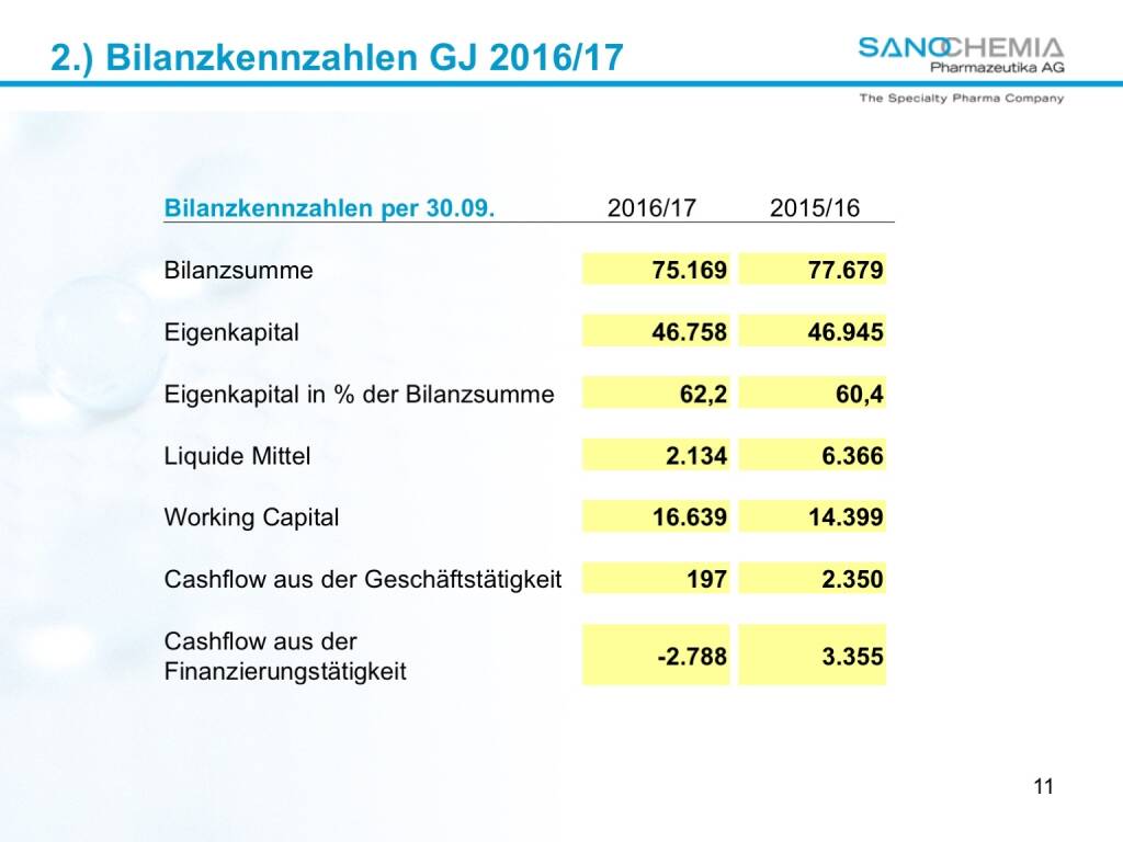 „ Präsentation Sanochemia - Bilanzkennzahlen “