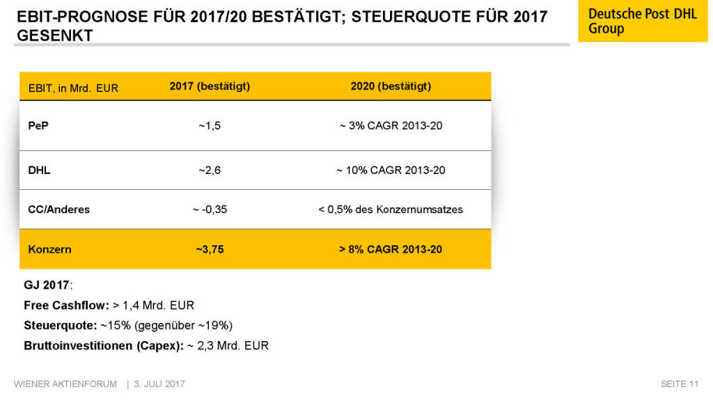 „ Präsentation Deutsche Post - EBIT-Prognose für 2017/20 “