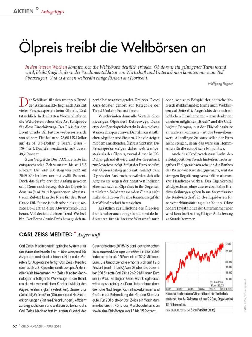 Geld - Das Magazin für Wirtschaft, Politik & Investmentprodukte, Ausgabe 04/2016
