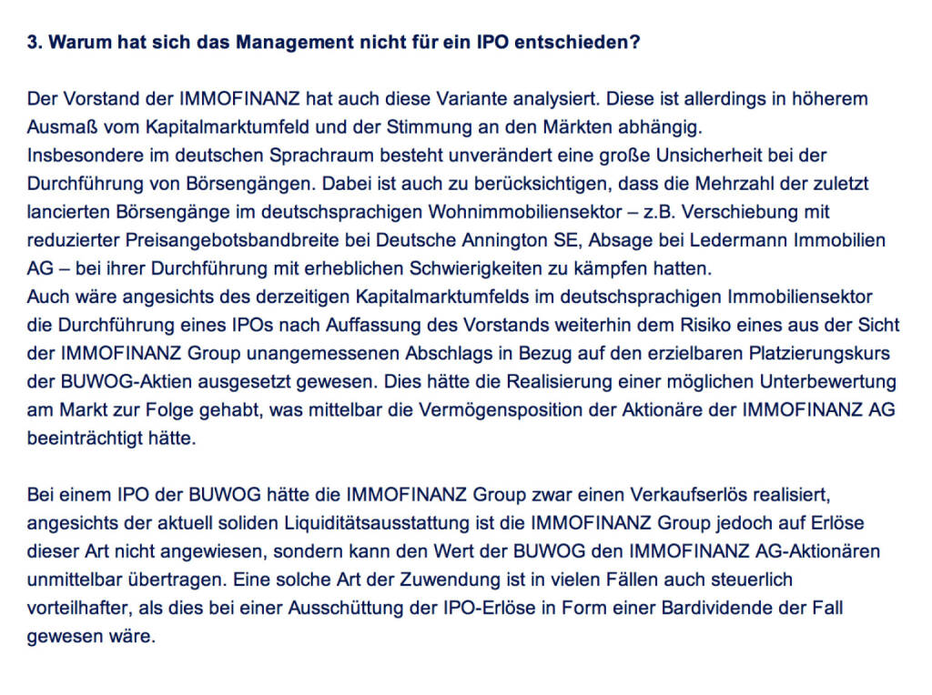 „ Frage an Immofinanz/ Buwog: Warum hat sich das Management nicht für ein IPO entschieden? “