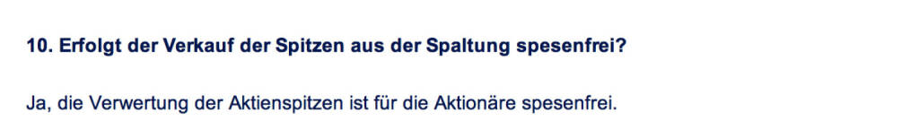 „ Frage an Immofinanz/ Buwog: Erfolgt der Verkauf der Spitzen aus der Spaltung spesenfrei? “