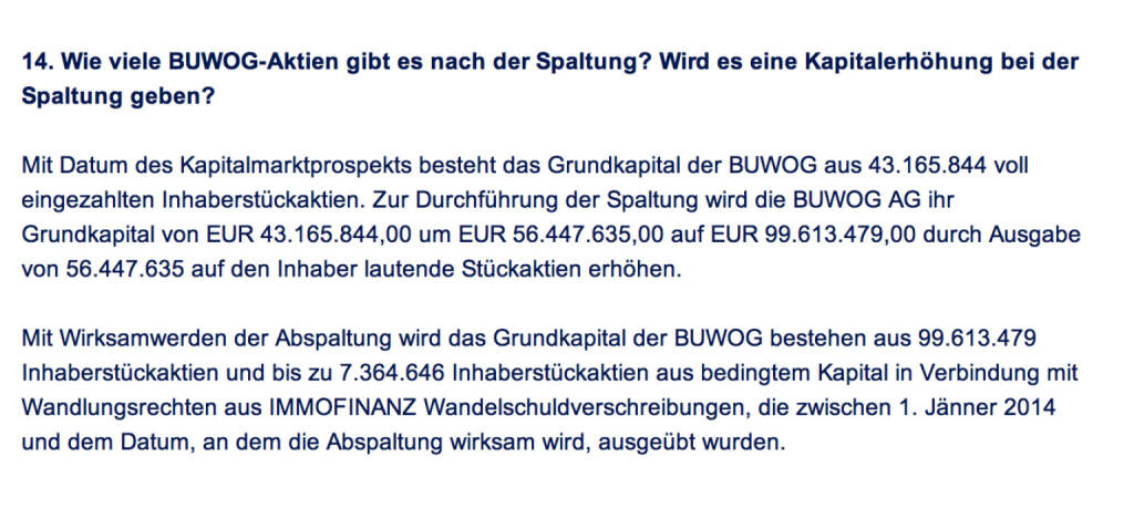 „ Frage an Immofinanz/ Buwog: Wie viele Buwog-Aktien gibt es nach der Spaltung? Wird es eine Kapitalerhöhung bei der Spaltung geben? “