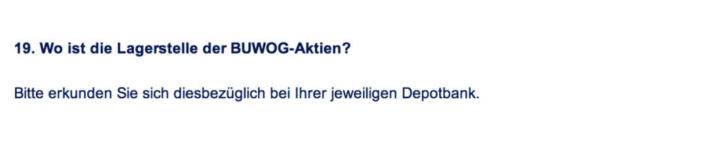 „ Frage an Immofinanz/ Buwog: Wo ist die Lagerstelle der Buwog-Aktien? “