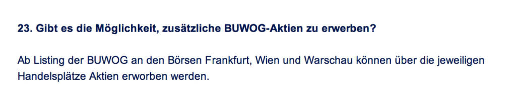 „ Frage an Immofinanz/ Buwog: Gibt es die Möglichkeit, zusätzliche Buwog-Aktien zu erwerben? “