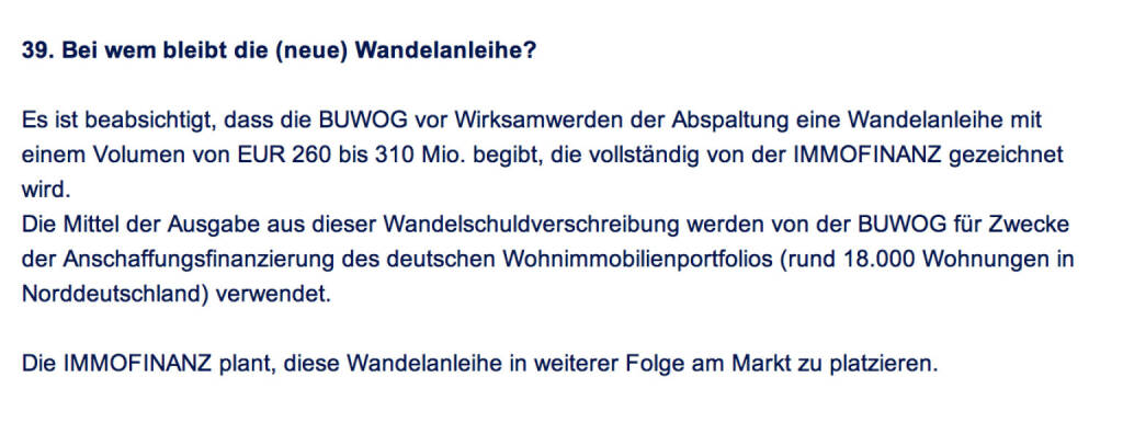 „ Frage an Immofinanz/ Buwog: Bei wem bleibt die (neue) Wandelanleihe? “